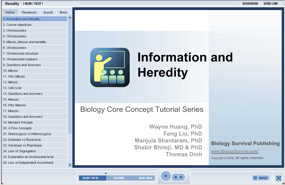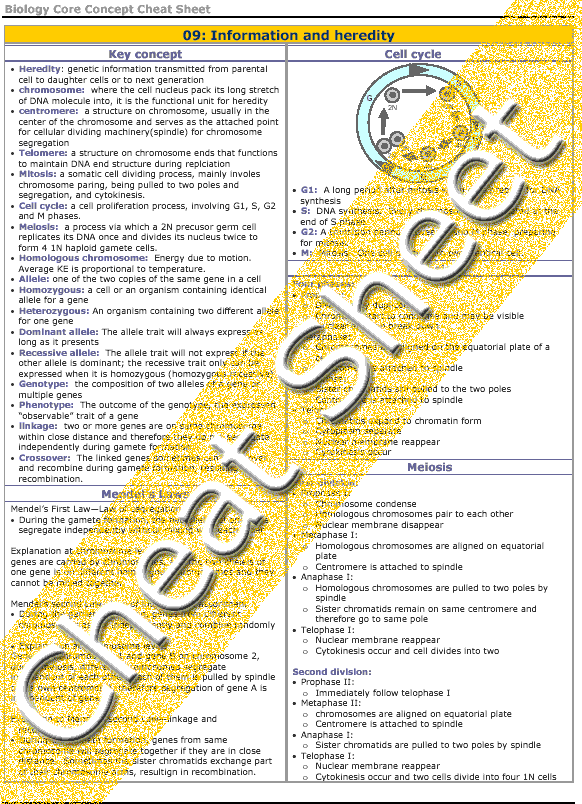 Genetic information is stored in DNA within the nucleus, in the format of chromosome. This information needs to be replicated precisely and transmitted into next generation (heredity). Genetic transmission from cell to cell is through mitosis, whereby DNA is replicated and chromosome duplicates and then segregates evenly into two daughter cells. Genetic transmission from organism to next generation is through meiosis and gamete formation. This transmission follows Mendel’s Law of segregation and Law of Independent Assortment.