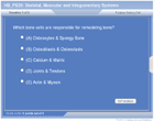 The skeletal system is the framework for the body.  It is made of bones and joints.  The skeletal system is support for the body, support for muscle movement, and produces new blood and immune cells.  The bone has four layers, the periosteum, spongy bone, compact bone, and bone marrow.  The bone can be remodeled by osteoclasts or osteoblasts, depending on mineral needs.  Bones are connected to other bones by different types of joints: immovable, slightly movable, and freely movable.