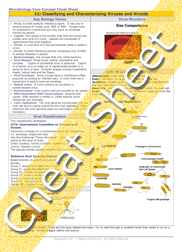 Structural characteristics of viruses and viroids and their classification are introduced. The viral genome, its structure and mechanisms of replication are presented in a step by step layout. The role of viruses in diseases and cancer are described. Finally how viruses are grown and their use in research are presented.