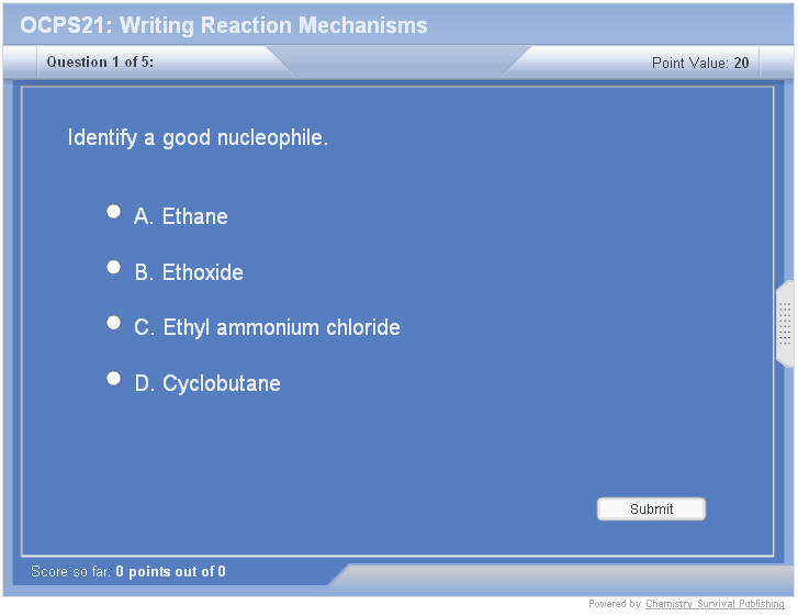 Intermediates can only come from starting reagents. Do not generate a species because you think it belongs there! Good intermediates include stable intermediates, conjugate acids or bases of reactants or products, neutral intermediate compounds, neutral organic molecules, carbocations, carbanions, free radicals, or carbenes. Characteristics of unlikely intermediates include two negative charges on the same molecule; two positive charges on the same molecule; opposite charges on the same molecule, except for recognized species; more than eight electrons on a first row element; or first row element with less than six electrons.