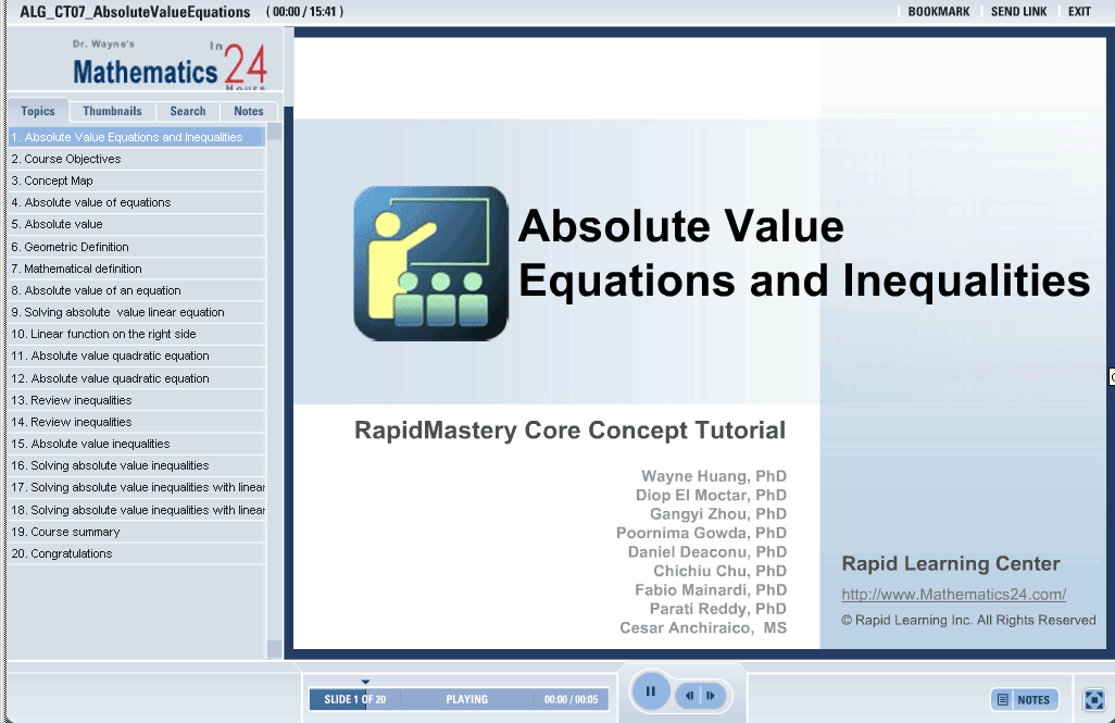 This tutorial shows the absolute value equations and their properties. The geometric definition of an absolute value is shown with the use of graphical examples. There are examples that show how absolute linear equations are solved. The importance of absolute value equations is mentioned in this tutorial.