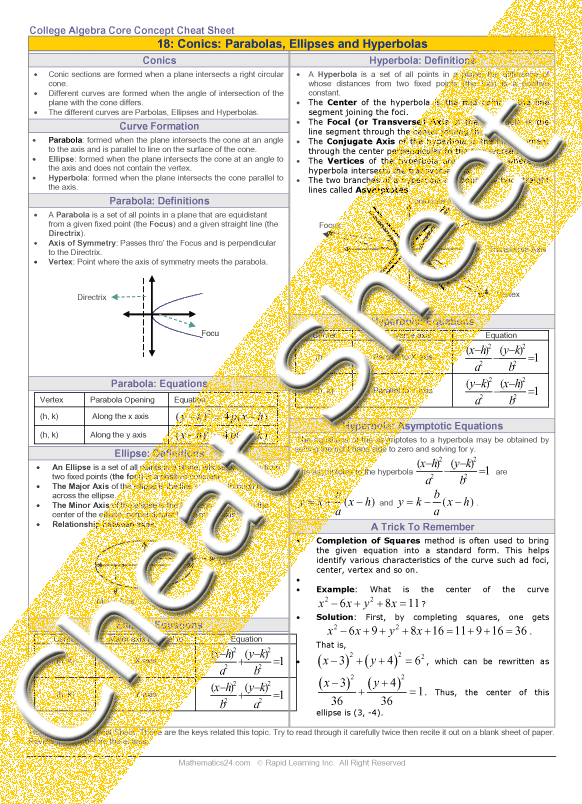 • Step by step examples of the different aspects of the conic sections.