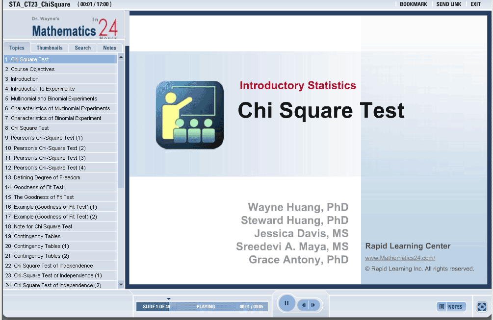 By completing this course, you will learn about the chi square test including multinomial and binomial experiments, Chi square test, goodness of fit test, contingency tables, Chi square test of independence and multinomial population comparisons