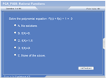 Basic definitions of rational functions Domain of rational functions Asymptotes of rational functions Formula Operations on rational functions Simple rational functions Simplification of rational functions Polynomial equations Solving polynomial equations |