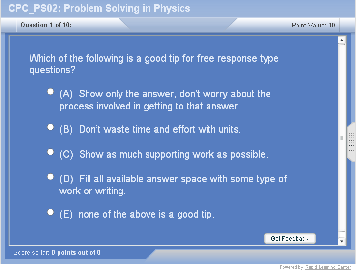 Chemistry : Physics : Biology : Math : SAT : ACT : AP : CLEP : MCAT : DAT : OAT : PCAT : Nursing : USMLE |