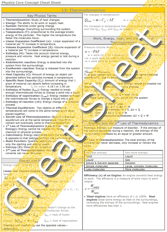 1st Law of Thermodynamics (Law of Conservation of Energy):