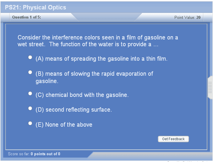 The principle that creates colors on thin layers of transparent substances.  The light reflecting off the interior of the substance interferes with light reflecting off the exterior.